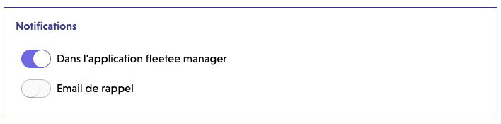 - Déterminer le paramètre "vous recevrez une alerte XX jours avant // km avant" afin d'être averti des prochains entretiens prévus sur vos véhicules.