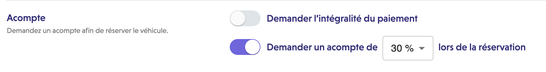 2 - Demander le paiement d'un acompte à la réservation. Vous avez le choix de décider du montant de l'acompte (pourcentage).