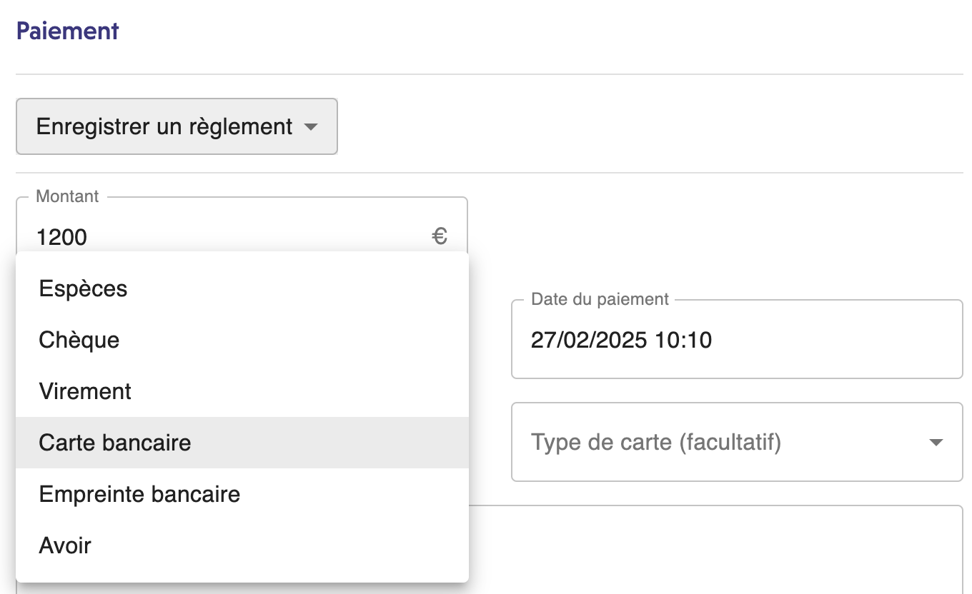 - Ajouter une caution : Si le client dépose sa caution par TPE, chèque, virement ou autre, vous pouvez enregistrer toutes les informations liés à ce dépôt de garantie : date, heure, moyen, montant.