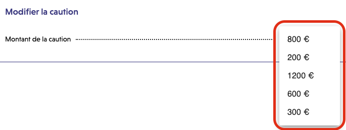 - Modifier la caution : Ce bouton vous permet de choisir la caution que vous souhaitez sélectionner parmi toutes celles créées dans l'outil.
