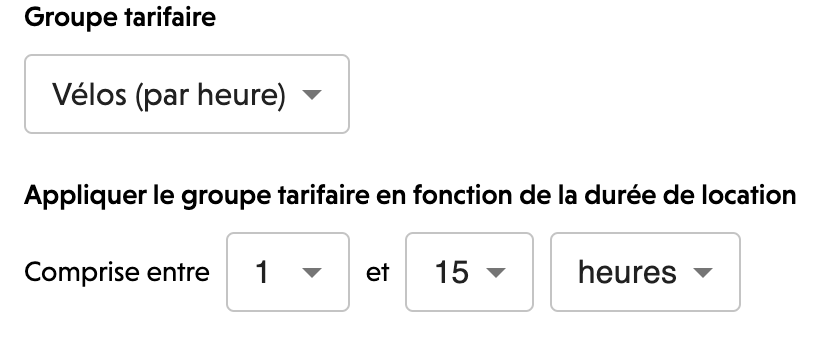 Ainsi, si le client demande une location pour 14 heures, le tarif de la location va se calculer sur le groupe tarifaire "vélo".