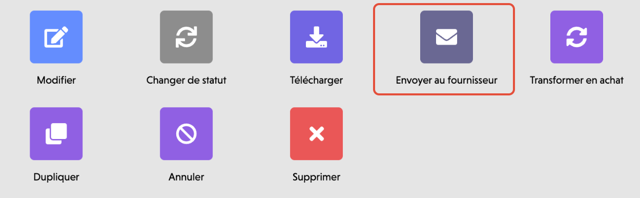 - Vous pouvez envoyer le bon de commande à votre fournisseur en cliquant sur l'icône "envoyer au fournisseur" :