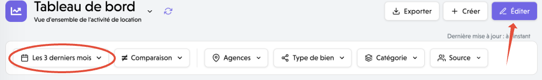 Par défaut, ce sont les données des 3 derniers mois qui s'affichent sur votre dashboard.